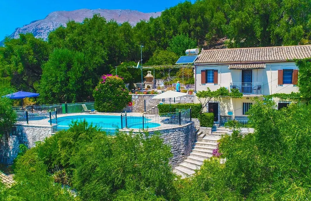 Old Stone Houseヴィラのある所はコルフ国際空港から25kmです. 敷地内にプライベ-トなプ-ルの他にプ-ル,サンデッキ とサンテラスがあります.